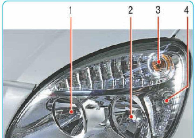 4 - лампа переднього габаритного вогню, тип лампи W5W 5W