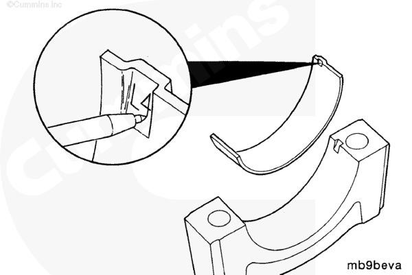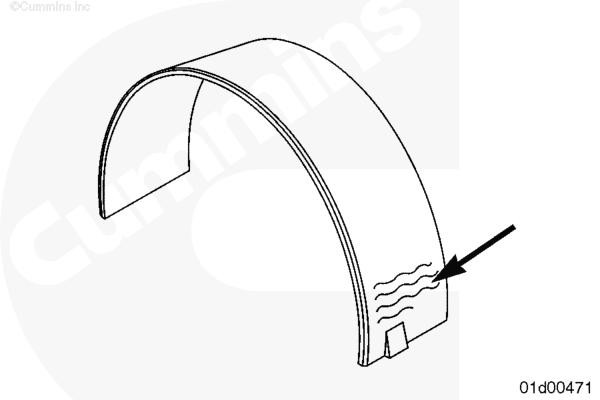 ПРИМІТКА: Якщо вкладиш підшипника пошкоджений, необхідно замінити обидва вкладиша підшипника. ПРИМІТКА: Більш детальні відомості про пошкодження підшипника наведено в Бюлетені 3810387, "Аналіз і запобігання несправностей підшипника".