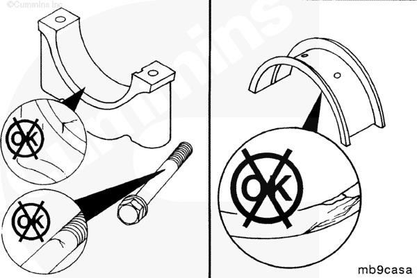 Перевірте всі кришки корінних підшипників, болти і упорні підшипники на відсутність глибоких задирів, слідів перегріву і пр.