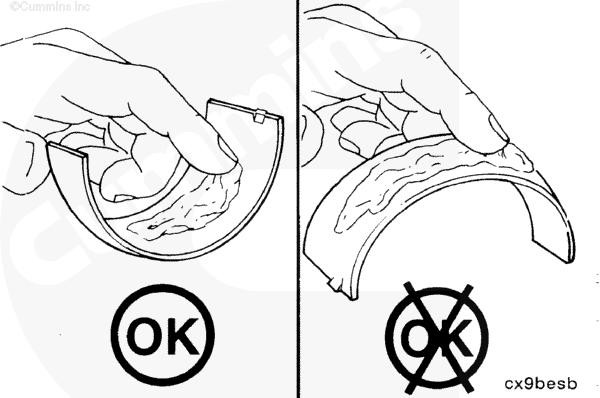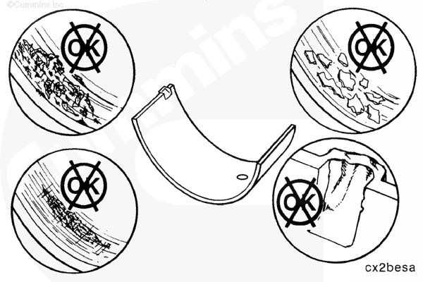 Перевірити стан опорної поверхні вкладиша підшипника на відсутність забоїн або задирок. Якщо не вдається видалити забої або задирки за допомогою наждачного бруска (номер за каталогом 3823258) або його аналога, підшипники необхідно замінити.