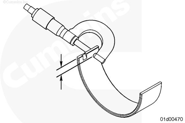 Виміряйте товщину вкладиша корінного підшипника мікрометром з кульковим наконечником. Даний завмер слід брати на відстані не менше 5 мм [0,2 дюйма] від торця підшипника, а не від самого його краю.