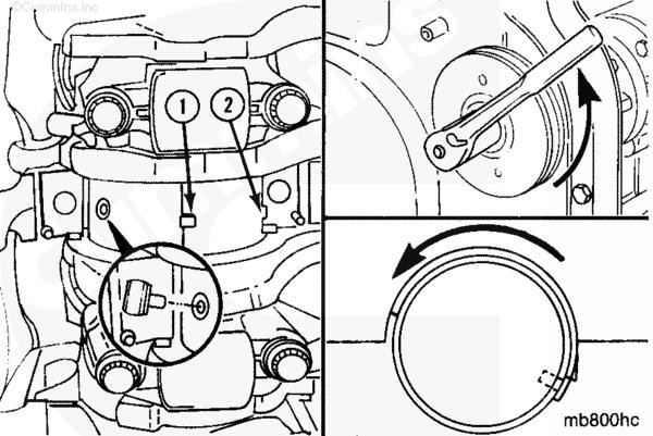 За допомогою пристосування для провертання колінчастого вала, номер за каталогом 3824591, поверніть вал так, щоб пристосування торкнулося верхнього вкладиша корінного підшипника з боку, зворотної виступу.