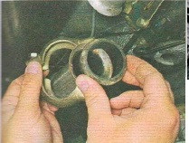 Встановлюємо глушник в зворотній послідовності. При необхідності замінюємо пошкоджені або втратили еластичність подушки підвіски