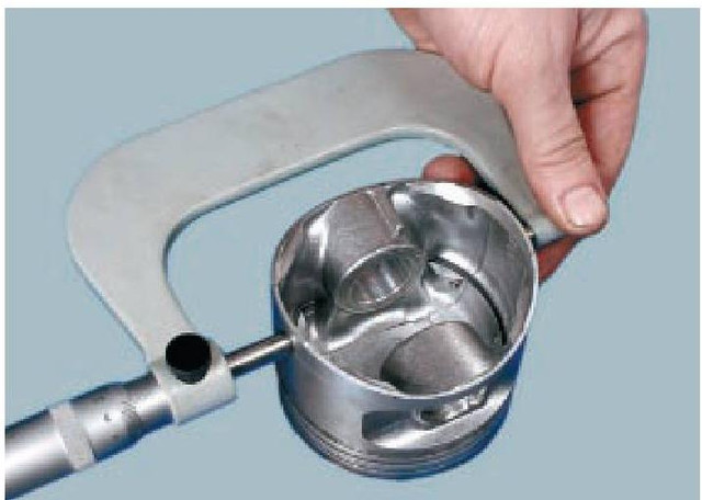 Перевірте проміжок між поршнями та циліндрами. Зазор визначається як різність між заміреним і діаметром і поршнями та циліндра. Номінальний проміжок становить 0,025-0,045 мм, гранично допустимий — 0,15 мм. Якщо проміжок не перевищує 0,15 мм, можна підібрати поршні з наступних класів, щоб проміжок був якомога ближчим до номінального. Якщо проміжок перевищує 0,15 мм, розточуйте циліндри під наступний ремонтний розмір і встановіть поршні відповідного ремонтного розміру. Виміряйте діаметр поршня на відстані 55 мм від його днища в площині, перпендикулярною поршневом у пальці.