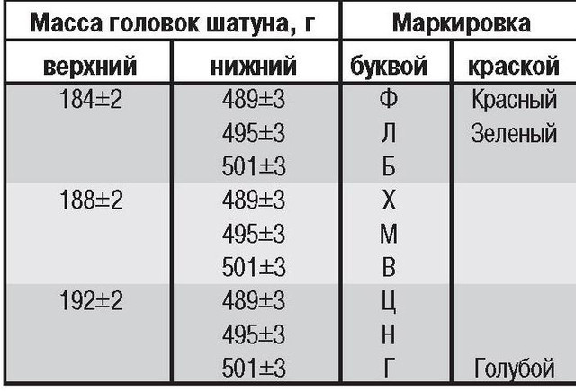за масою (буква або фарба), 2 — клас шатуна по пальці.