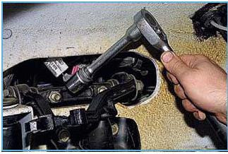 Головкою "на 19" відвертаємо гайки двох болтів кріплення важеля до кронштейна поперечки.