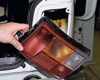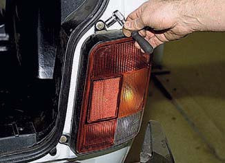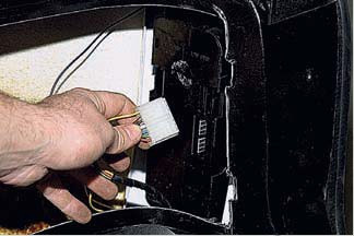 ...нажав на фиксатор, отсоединяем колодку жгута проводов от разъема фонаря.