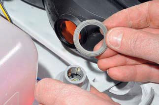 Если кольцо порвано, потрескалось или потеряло эластичность, заменяем его новым.