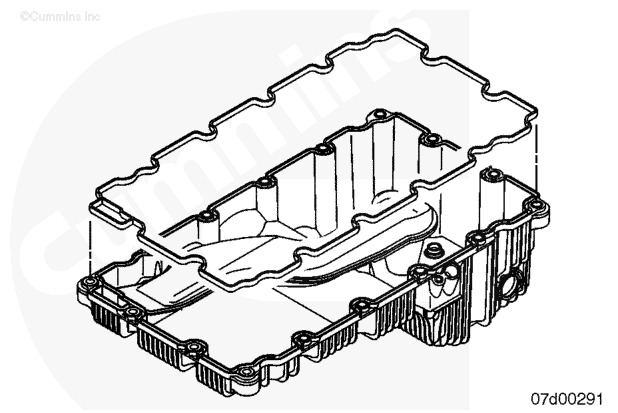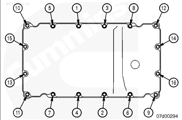 ПРИМІТКА: Якщо була встановлена нова прокладка кришки передніх розподільних шестерень, не треба використовувати герметик на двох Т-подібних з'єднаннях піддона картера в тих місцях, де кришка передніх розподільних шестерень торкається блока двигуна.