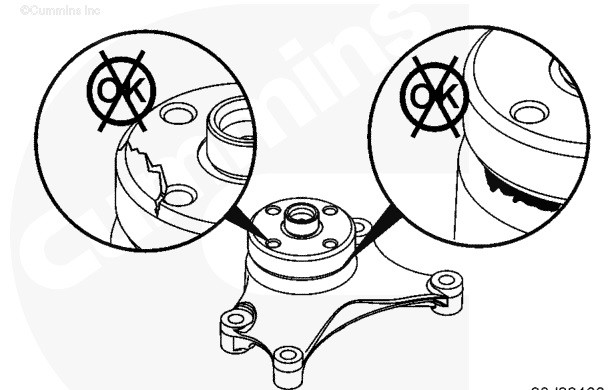 Перевірте фаску маточини вентилятора і робочу поверхню шківа вентилятора на відсутність пошкоджень.