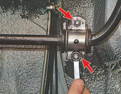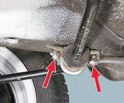 Відверніть по дві гайки кріплення кронштейнів штанги стабілізатора з обох сторін автомобіля.