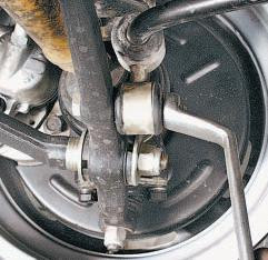 Якщо треба замінити тільки стійки стабілізатора або їх втулки, відверніть гайки кріплення стійок до важелів і збийте стійки зі штанги стабілізатора дерев'яним або полімерним молотком.
