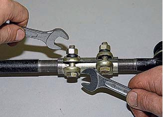 Брудозахисні ковпачки та наконечники кермових тяг можна замінити на автомобілі. Для наочності ці операції виконуються на знятій тязі.