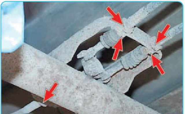 2. Ослабте гайки кріплення переднього та двох задніх тросів до кронштейна