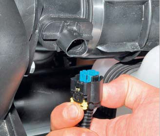 Від'єднуємо колодку джгута проводів від датчика масового витрати повітря...