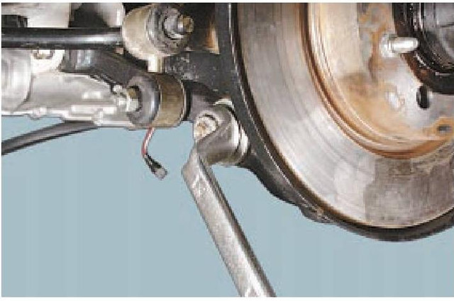1. Підніміть і встановіть передню частину автомобіля на опори. Зніміть колесо.