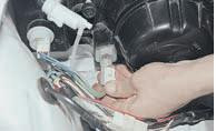 Якщо змінюємо ліву блок-фару, то для забезпечення доступу попередньо знімаємо бачок склоочисника, якщо міняємо праву акумуляторну батарею.