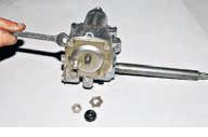 Зливаємо олію з картера редуктора, закочуємо регулювальну гайку та знімаємо стопорну шайбу.