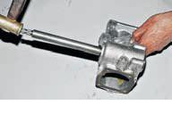 Легкими ударами молотка з м'якого металу вибиваємо вал черв'яка разом із підшипником із картера редуктора.