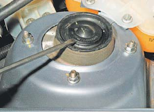 Головкою «на 12» відвертаємо три гайки кріплення верхньої опори амортизаторной стійки до чашці кузова...