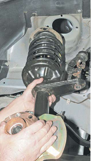 вести двома способами. Так, при першому способі амортизаторную стійку можна демонтувати, не знімаючи направляє колодок і гальмівного диска.