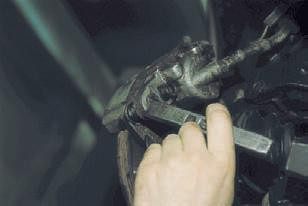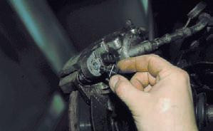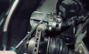 Підчепивши викруткою, піднімаємо супорт з циліндром вгору.